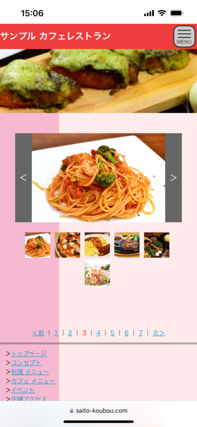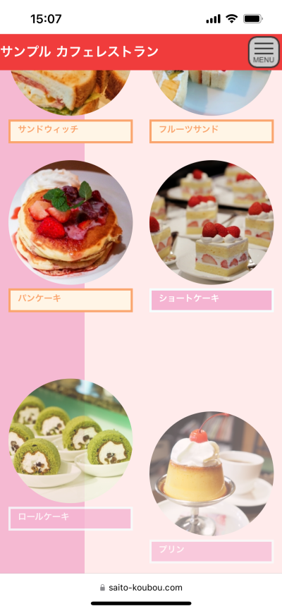 架空のカフェレストランのホームページを制作したサンプルです。